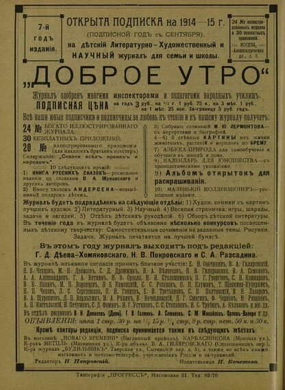 Доброе Утро. 1914. № 04 (25 октября): Двухнедельный журнал для детей
